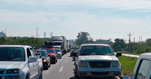 Decenas de personas y vehículos tienen que esperar casi media hora para cruzar y llegar al paso de lanchas El Zacate o simplemente para llegar a sus casas en la margen del río Pánuco.