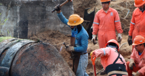 La Comisión Municipal de Agua Potable y Alcantarillado de Altamira realiza trabajos de reparación de una fuga de agua cruda en una tubería ubicada en
