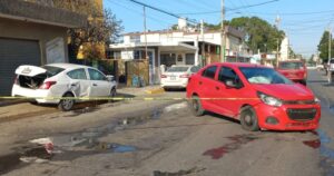 Uno de los vehículos terminó arriba de una banqueta tras el golpazo