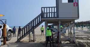 Algunos de los puestos quedaron enterrados en la arena, a otras torres les arrancó peldaños de escaleras