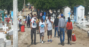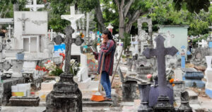 Desde temprana hora las personas acudieron a los panteones para visitar a sus difuntos; aprovecharon para limpiar tumbas y colocar flores