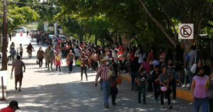 Elementos de tránsito Altamira tuvieron que cerrar la calle Benito Juárez, ya que la fila de papás y menores alcanzaba más de una cuadra.