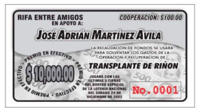 El costo del boleto para la rifa de amigos es de 100 pesos, para que el ganador se lleve 10 mil pesos; el contacto es con María Eugenia García Saunders vía Facebook