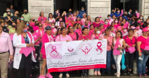 En el marco del mes rosa este grupo de féminas inició la caminata frente al palacio municipal y terminó en el mismo punto.
