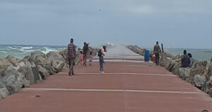 Protección Civil instaló la bandera negra debido al fuerte oleaje, tras el ingreso del frente frío