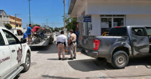 Ambos terminaron en el asfalto con golpes y raspones, pese a ello no llegaron las corporaciones de rescate, por lo que fueron llevados en la patrulla de tránsito a la corporación