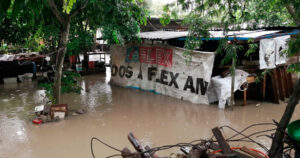 Bomberos y personal de Protección Civil tuvieron que improvisar un dren pluvial para realizar el desfogue