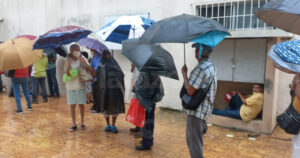 Entre lluvia y sol los adultos mayores esperan horas para recibir su pago