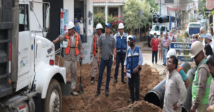 El gerente general Gabriel Guerra Turrubiates en compañía del personal técnico, realizó una visita de supervisión para constatar las maniobras de reparación en dicha zona
