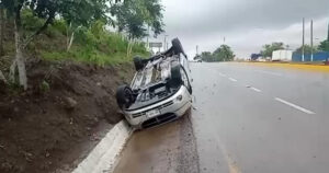 Se presume que el conductor perdió el control, derrapó algunos metros y volcó a un costado de la carpeta asfáltica