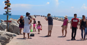 Disfrutando de las temperaturas que alcanzaron los 31 grados centígrados pero con una sensación térmica de 37° , familias completas se instalaron en los diferentes puntos de la playa