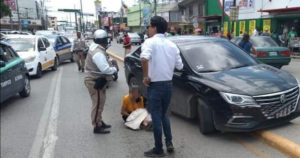 El chofer perdió el control en un intento por evitar golpear a la señora y se montó en el camellón para quedarse atascado