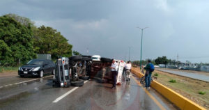 Elementos de la Policía Estatal del área de proximidad fueron los primeros en llegar y auxiliar a los operadores que resultaron con algunas heridas.
