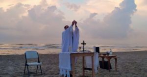 El sacerdote Oscar López Navarro realizó una misa este sábado en Playa Miramar