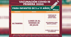 La aplicación del biológico de Pfizer pediátrica comenzará este lunes 25 de julio y terminará el viernes 29 de julio