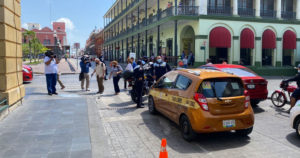Taxista casi arrolla a dos elementos de transito