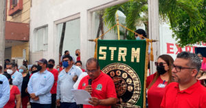 Sindicalizados del STRM, sección 18, anunciaron que en punto de las doce horas comenzarán a colocar banderas rojinegras