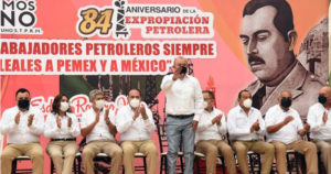 Esdras Romero, secretario general de la Sección Uno de Pemex, realizó una ceremonia cívica para recordar la nacionalización de la industria petrolera