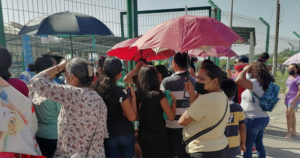 Los papás que aún quedaban formados, exigían que al menos recibieran una contraseña o número para no esperar al día siguiente formados