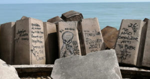En una de las piedras, colocaron hasta una placa en memoria de dos personas que fallecieron hace dos años.