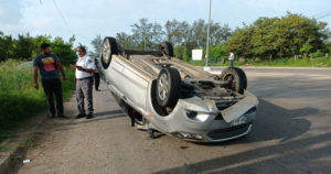 Vuelca automóvil en el corredor urbano; no hay lesionados.