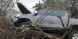 Derivado de ello se salió de la carpeta asfáltica y chocó contra un poste de concreto y varios arbustos.