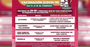 Está será la tercera dosis contra el covid-19 que reciben las personas de 50 a 59 años de edad que radican en Altamira