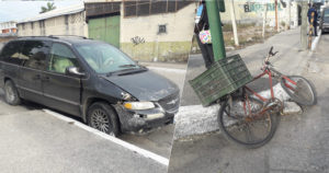 El operador de la bicicleta terminó en el suelo, resultando con golpes contusos.