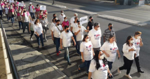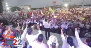 El candidato de la alianza Morena-PT-PVEM estuvo acompañado por seis senadores de la República, la secretaria general del CEN de Morena, Citlalli Hernández, diputados federales y locales