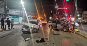 ALTAMIRA, TAMAULIPAS.- Aparatoso choque entre una camioneta y un vehículo dejó cuantiosos daños materiales la noche del pasado domingo en la zona centro de Altamira.