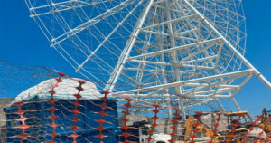 Todavía les falta montar los rieles, los motores, los cajones a esta rueda que tendrá 50 metros de altura y 32 cabinas para los visitantes.