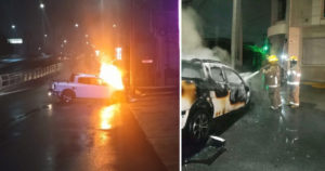 El conductor resultó con algunos golpes luego del fuerte choque con el objeto fijo.