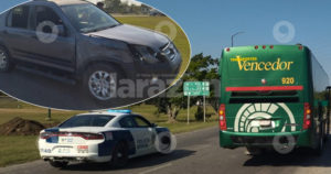 A pesar de lo fuerte del accidente, ni el conductor de la camioneta que terminó volcada y el conductor del autobús y los tres pasajeros que venían a bordo de la unidad resultaron lesionados.