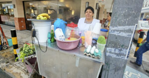 Desde hace 50 años, Araceli Reyes Hernández, mujer trabajadora y jefa de familia instala a diario su puesto de jugos y licuados