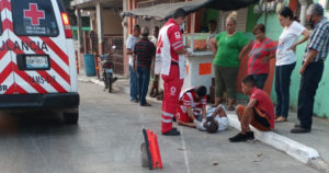 El motociclista quedó tendido en el suelo, siendo auxiliado por varias personas