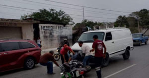 La falta de precaución por parte de la conductora de un vehículo en color negro, ocasionó que se impactara contra el motociclista.
