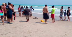 Los hechos ocurrieron en la zona norte, a la altura de la torre 13 de guardavidas, los bañistas se aglomeraron para observar al ejemplar de tortuga lora