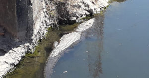 El saurio ya ha sido movido del lugar en otras ocasiones por elementos del cuerpo de Bomberos.