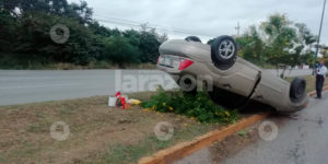 El carro involucrado es un Ford Fiesta en color rojo con matrícula del estado de Tamaulipas.