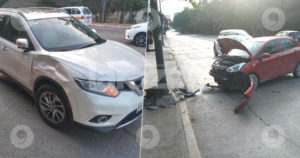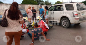 TAMPICO, TAMAULIPAS.- Con una lesión en la pierna derecha terminó un motociclista al impactarse contra una camioneta, en la zona norte de Tampico. La segunda