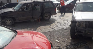 Debido al golpazo, el operador de la Jeep sufrió un fuerte golpe en la frente mientras que un adulto mayor que viajaba en la Explorer resultó con golpes leves