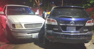 Chocan dos camionetas en una bajada