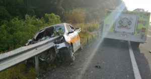 La dirección de Tránsito y Vialidad informó que el percance dejó una persona lesionada; el exceso de velocidad fue la causa