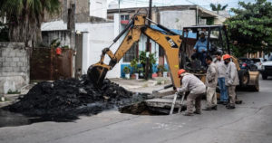 Una cuadrilla de trabajadores realizó la demolición del pavimento para valorar la magnitud del daño y evitar un hundimiento
