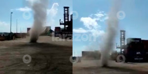 Un mini tornado se registró la mañana de este jueves en las instalaciones de la Administración Portuaria Integral de Altamira.