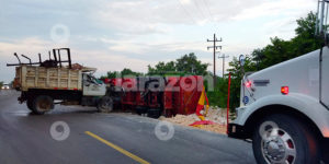 Camioneta de redilas colisiona contra tráiler, un herido.