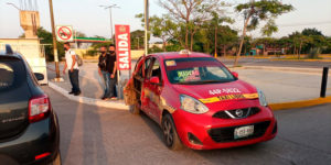 El costado derecho de un auto del transporte público fue destrozado por una camioneta, en aparatoso choque suscitado en la zona norte de Tampico.