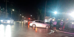 Dañado de la parte frontal acabó un automóvil particular tras estamparse contra un poste de la CFE, luego de que lo impactara otra unidad.