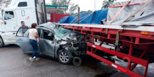 El vehículo compacto termina totalmente destrozado de su parte frontal.