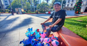 A sus 80 años, Pascual Bobadilla Cuevas sigue llegando puntualmente a la Plaza de Armas de Tampico.